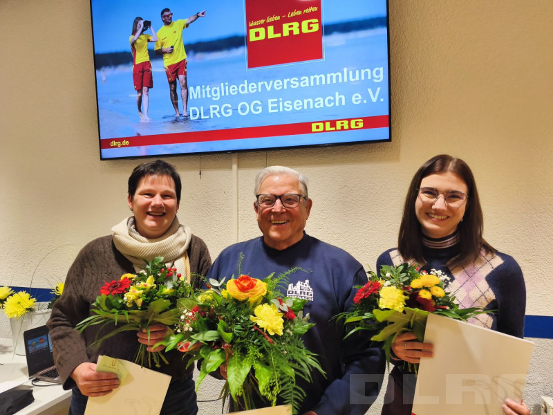 „Dass wir mit Jürgen Büchner jemanden für 60 Jahre in der DLRG ehren können, ist etwas ganz Besonderes“, sagt Eva Lützelberger, Vorsitzende der Eisenacher Rettungsschwimmer und selbst 50 Jahre Mitglied. „Dass dann auch noch seine Schwiegertochter Alexandra und seine Enkelin Jessica ebenfalls für jeweils 25 Jahre Mitgliedschaft geehrt werden konnten, war nicht nur ein glücklicher Zufall, sondern zeigt auch, wie stark die Familie Büchner dem Rettungsschwimmen verbunden ist.“