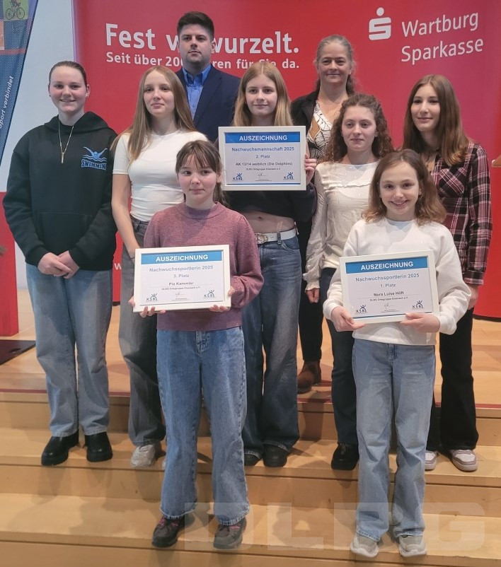 Als „Nachwuchsmannschaft“ wurden Judy Hase, Tessa Hartmann, Emily Schill, Emilia Steinbach und Lena Maria Wolter als Staffel AK13/14 mit einem zweiten Platz geehrt. Im Rettungssport werden Wasserrettungselemente zu Wettkampfdisziplinen adaptiert. So können Rettungsschwimmer ihre Fertigkeiten festigen, sie verbessern und sich in Meisterschaften messen. Bei den Mitteldeutschen Regionalmeisterschaften in Halle/ Saale Ende April blieben die fünf Mädchen fehlerlos. Sie erkämpften sich mit einer starken Leistung den Thüringer Meistertitel und wurden Gesamt-Dritte. Somit sicherten sie sich erneut den begehrten Startplatz bei den Deutschen Mehrkampfmeisterschaften.